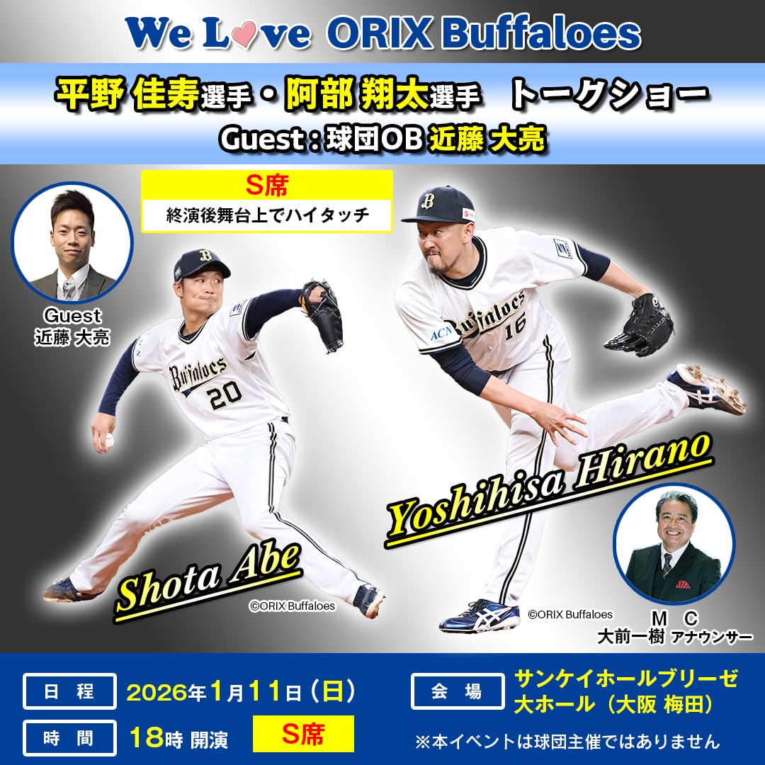 【二部:S席】オリックス・バファローズ 平野佳寿選手・阿部翔太選手 トークショー