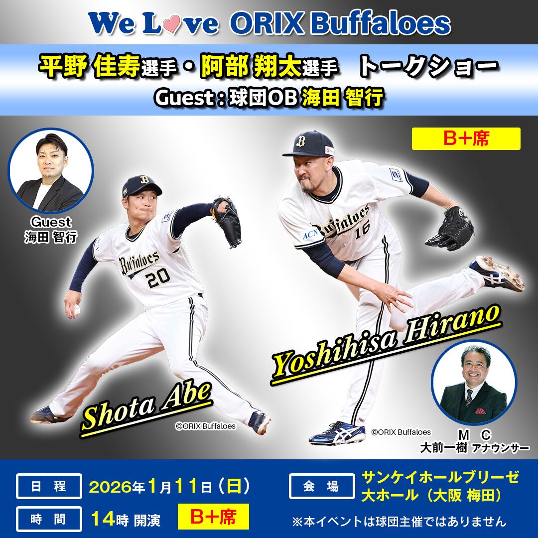 【一部:B+席】オリックス・バファローズ 平野佳寿選手・阿部翔太選手 トークショー